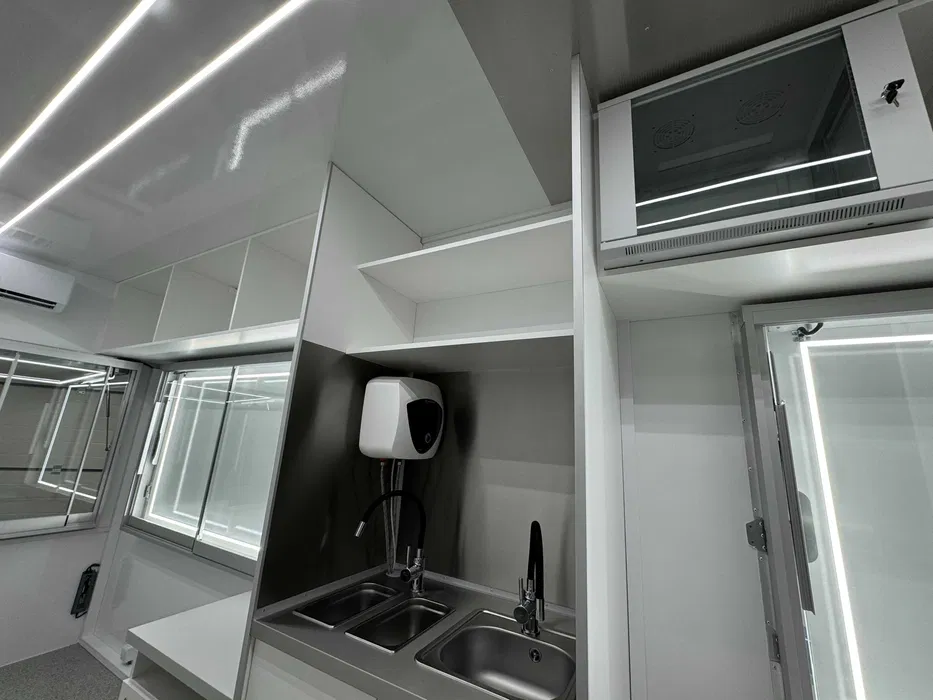 External electrical box with power connection (32A sleeve) Internal electrical distribution with fuses