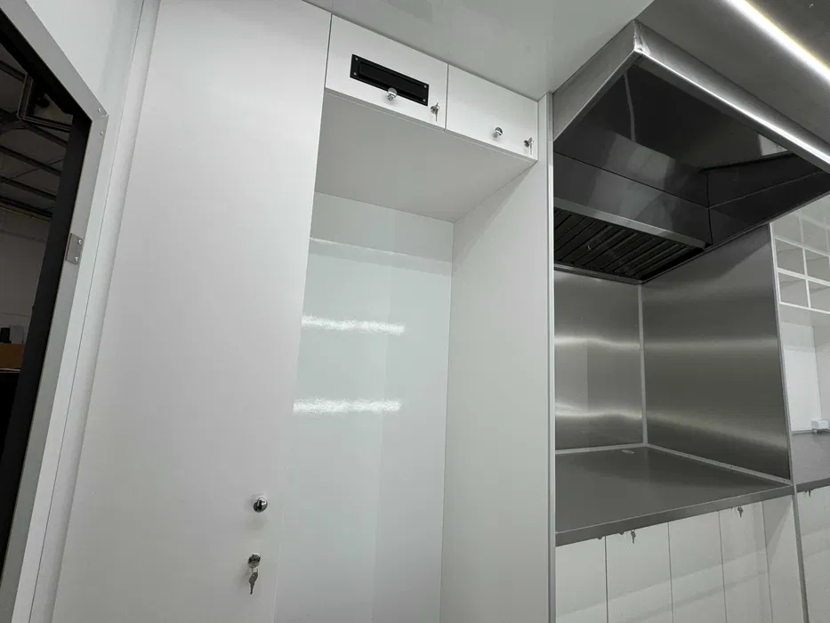 Extractor hood 2 m above the worktop made of stainless steel with light weight structure