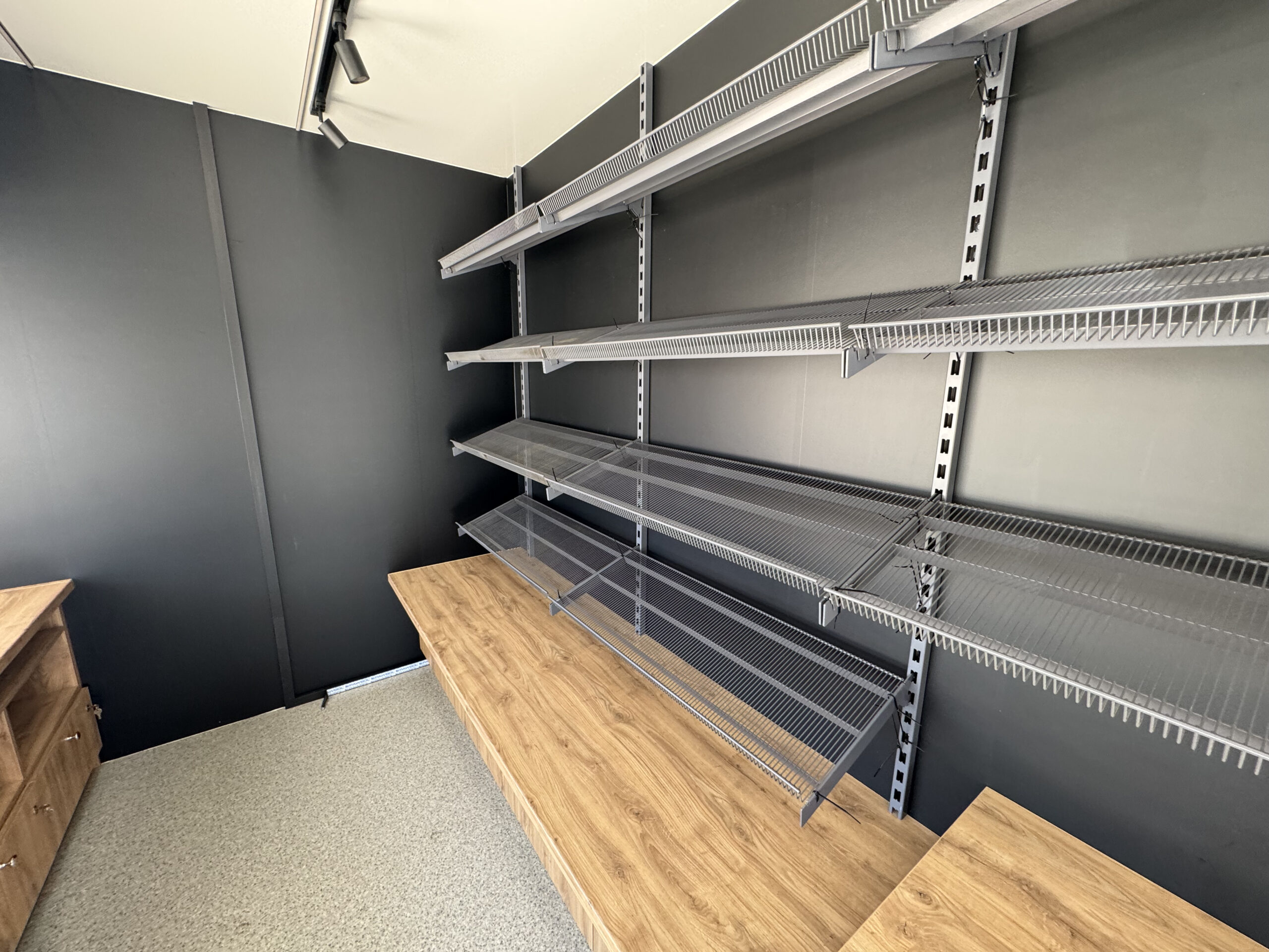 Nowoczesna przyczepa handlowa, zaprojektowana z myślą o maksymalnej funkcjonalności i estetyce. To przestrzeń sprzedażowa, która łączy elegancki design z praktycznymi rozwiązaniami użytkowymi.